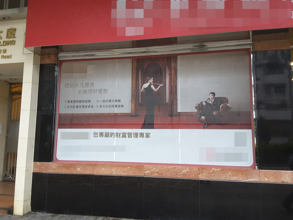 我幾乎每天早上都會搭巴士經過一間銀行,而銀行門外的玻璃上有一幅構圖頗精緻的銀行產品廣告,我一直都不以為意,直到有一天經過那一間銀行時,看到了廣告突然有一股違和感湧出來。